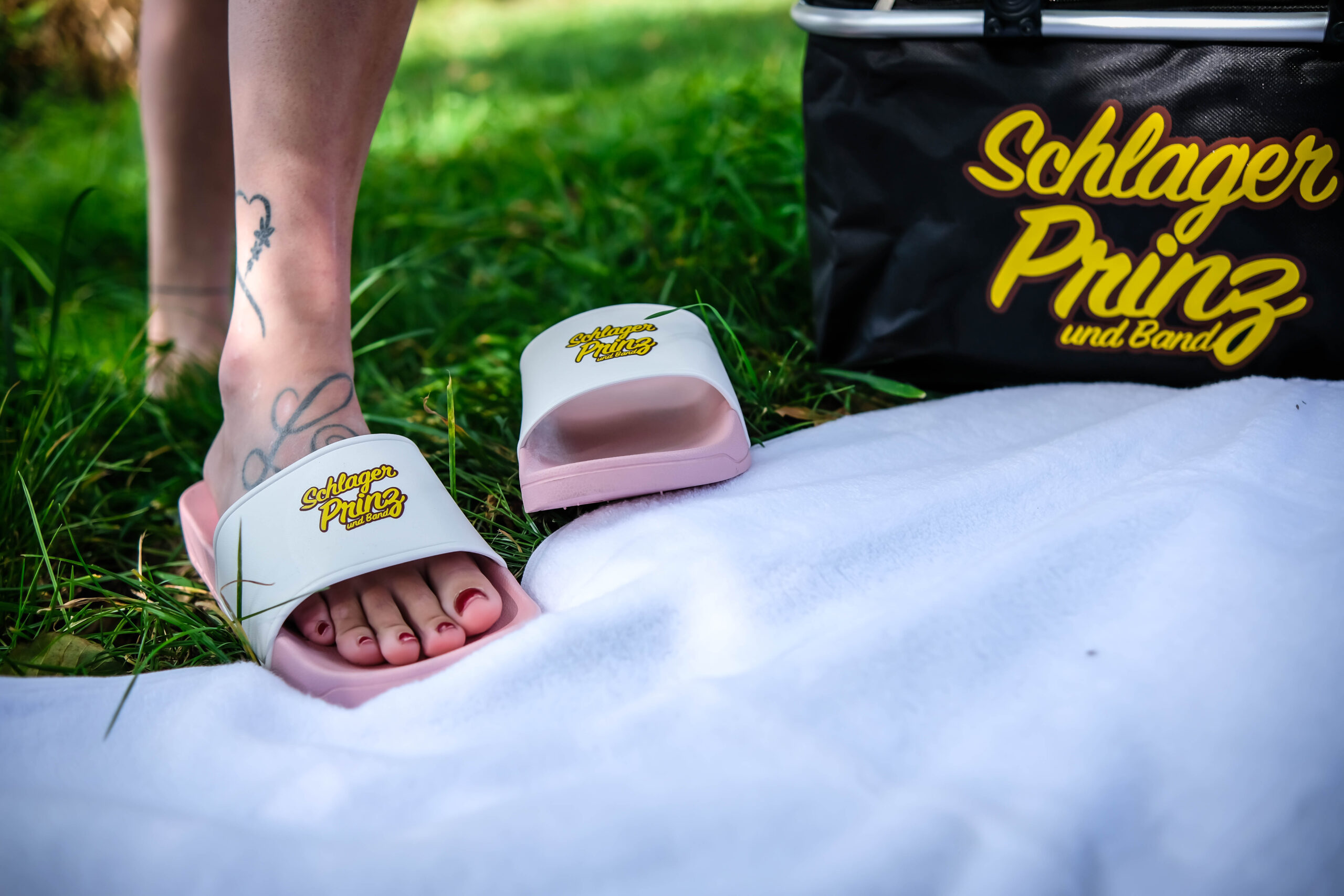 Schritte voller Schwung und Leidenschaft – das bieten dir unsere brandneuen Schlagerprinz Schlagerletten! Mit dem unverwechselbaren Schlagerprinz Logo bedruckt, setzen diese Schlagerletten ein klares Statement für deine Liebe zur großartigen Musik und den mitreißenden Auftritten von Schlagerprinz & Band.